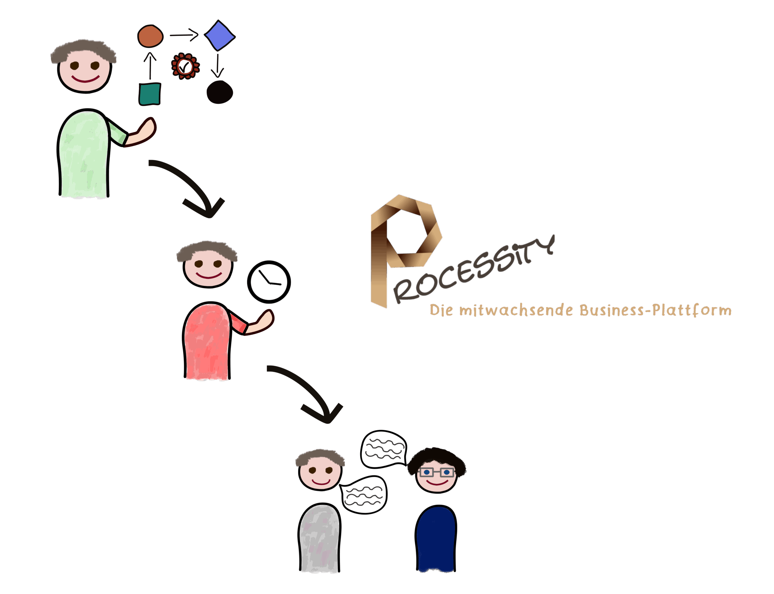 - Das eigene Wissen prägt die Umsetzung von Standard-Prozessen für die eigene Unternehmensbranche auf der Plattform